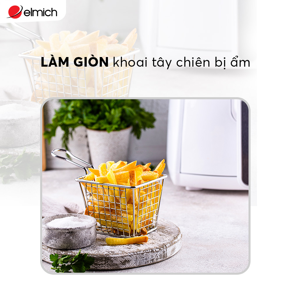 Để phục hồi độ giòn của khoai tây chiên bị ẩm, bạn có thể lấy một tờ giấy, đặt khoai lên trên và cho lại vào lò vi sóng hoặc nồi chiên không dầu, đặt nhiệt độ vừa phải và quay tầm 5-7 phút.