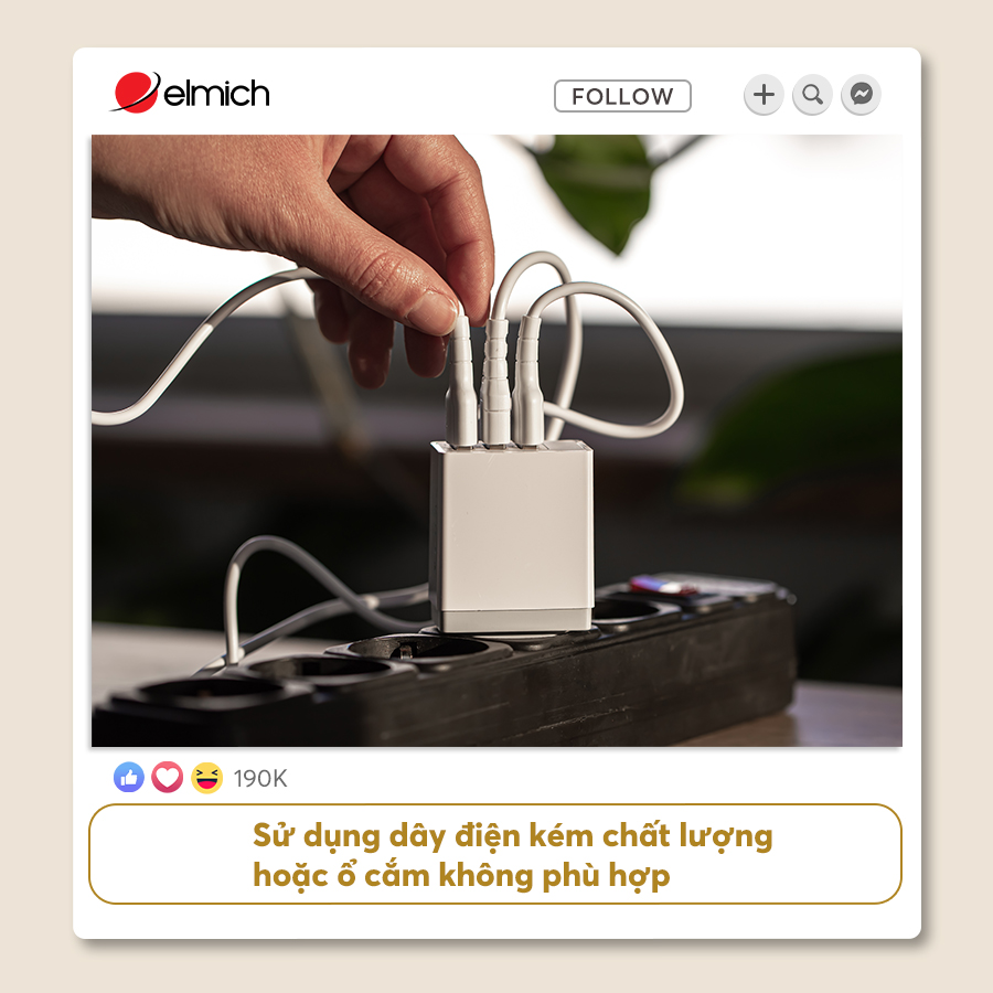7. Sử dụng dây điện kém chất lượng hoặc ổ cắm không phù hợp