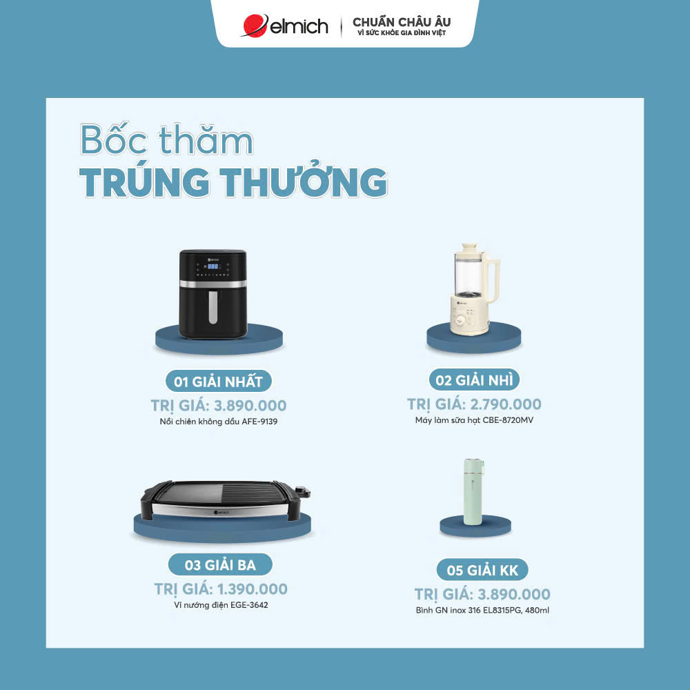 - 05 giải khuyến khích: Bình giữ nhiệt inox 316 EL8315PG dung tích 480ml trị giá 3.890.000đ