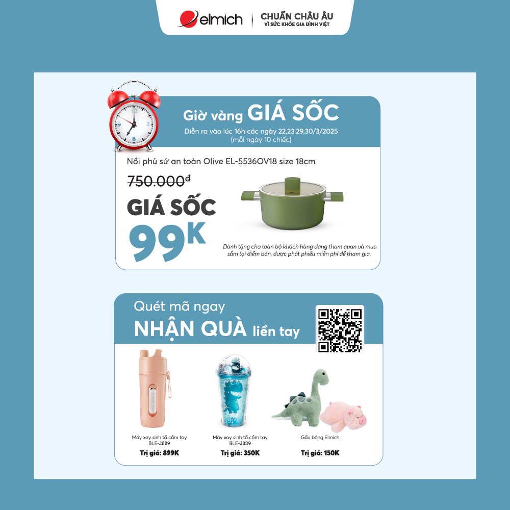 - Tặng 01 Nồi chống dính vân gỗ 18cm cho đơn từ 2.399.000đ