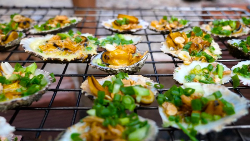 Trong danh sách các món ăn từ bào ngư, bạn không thể bỏ qua món ăn này. Thịt bào ngư được nướng chín đều, ngọt lịm, béo ngậy kết hợp với mỡ hành và lạc rang đập dập thực sự là một món ăn không thể bỏ qua từ thịt bào ngư đấy.
