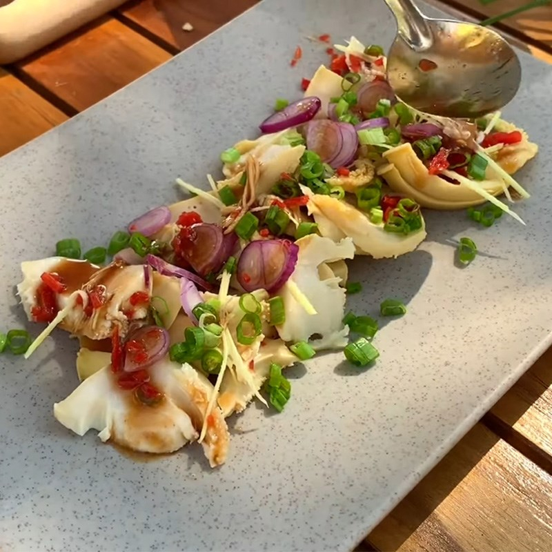 Chỉ cần nhìn qua, bạn sẽ thực sự muốn thử món ăn này ngay lập tức. Gỏi bào ngư với rong nho là một món ăn có phần ngoài đầy màu sắc, vô cùng bắt mắt. Phần nước sốt gỏi chua cay thoảng hương cay nồng sẽ khiến thịt bào ngư trở nên đậm đà, hấp dẫn hơn bao giờ hết.