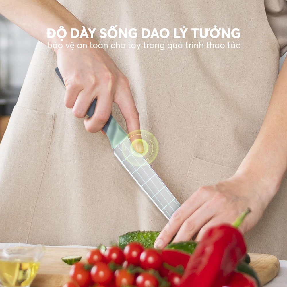 | Công dụng | Dùng để chế biến các món ăn như: Gọt, tỉa rau củ, trái cây; thái rau củ quả; chặt xương gà, băm thịt; cắt rau, thực phẩm… | |