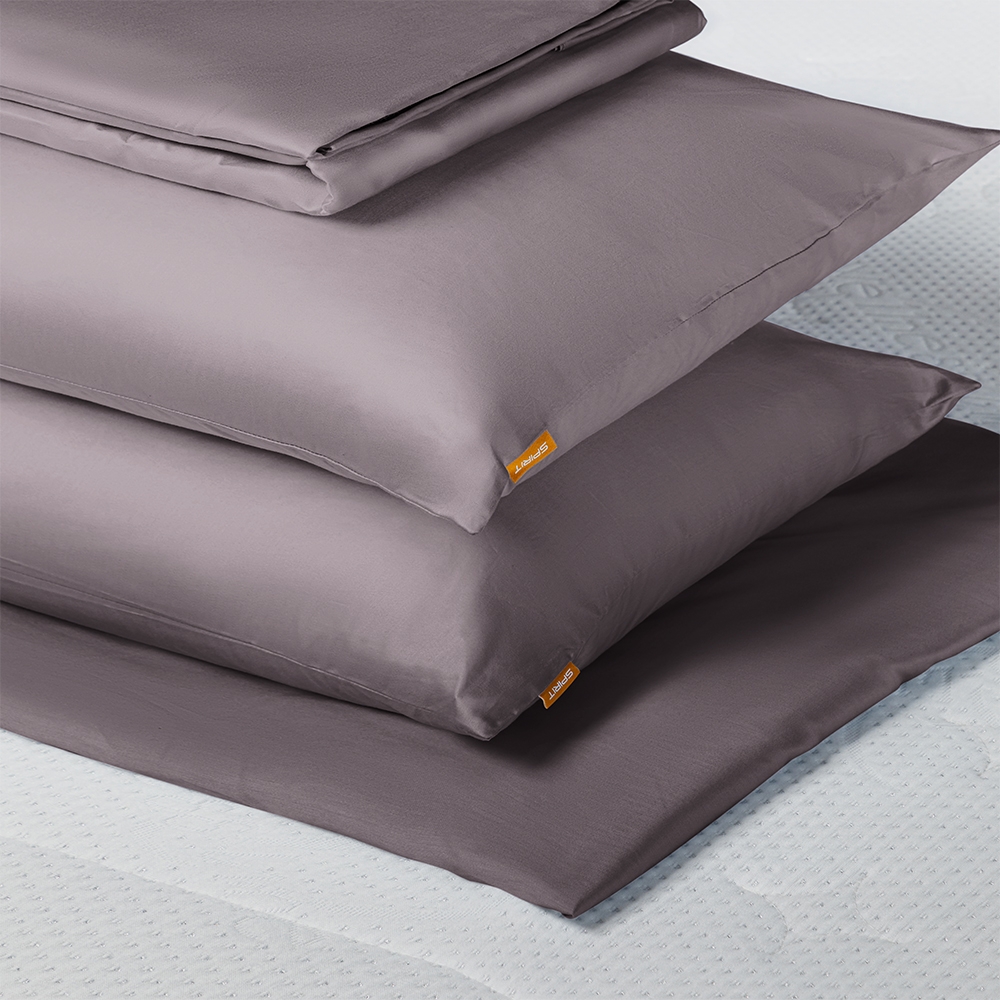 100% tạo thành từ sợi cotton Ai Cập có độ dài lớn, với sản phẩm hoàn thiện là Mako Satin - Loại chất liệu cao cấp, mềm mại, bóng bẩy và sang trọng hơn satin thông thường. Với trọng lượng 140 g/m2, đây là chất liệu thoáng khí, có khả năng hấp thụ và thoát ẩm hiệu quả, phù hợp với nhiều kiểu thời tiết.