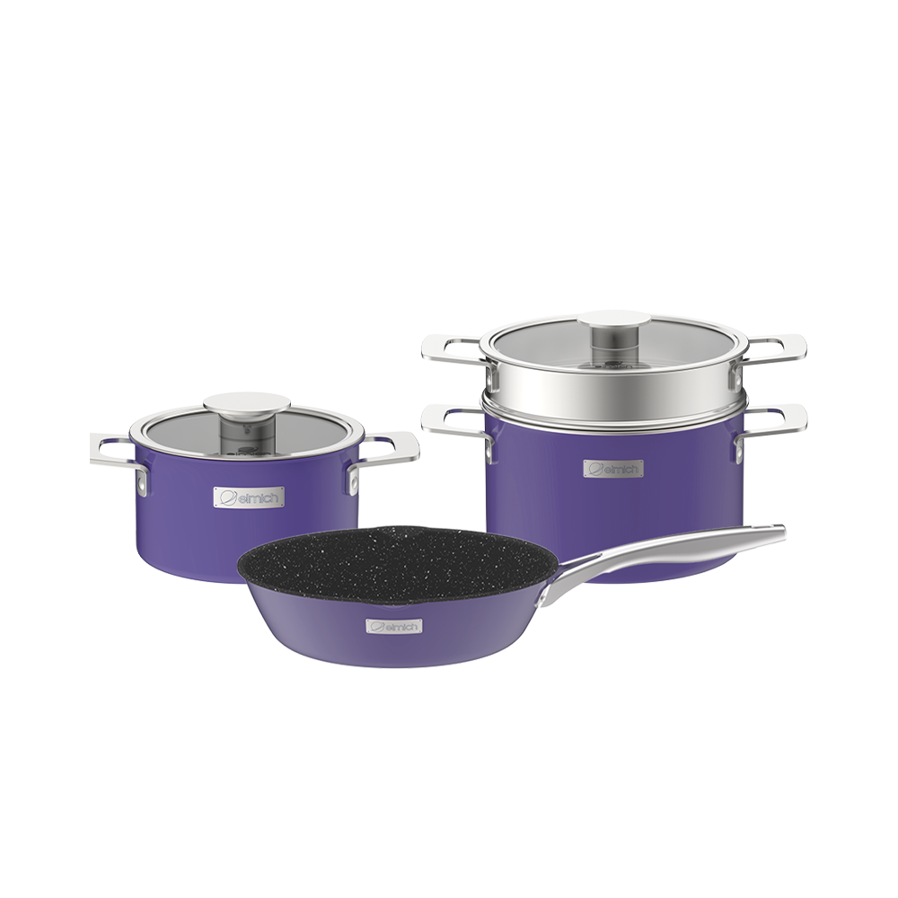 Bộ nồi Inox liền khối Elmich Hera EL-8197 size 18,nồi hấp 22,chảo 26cm