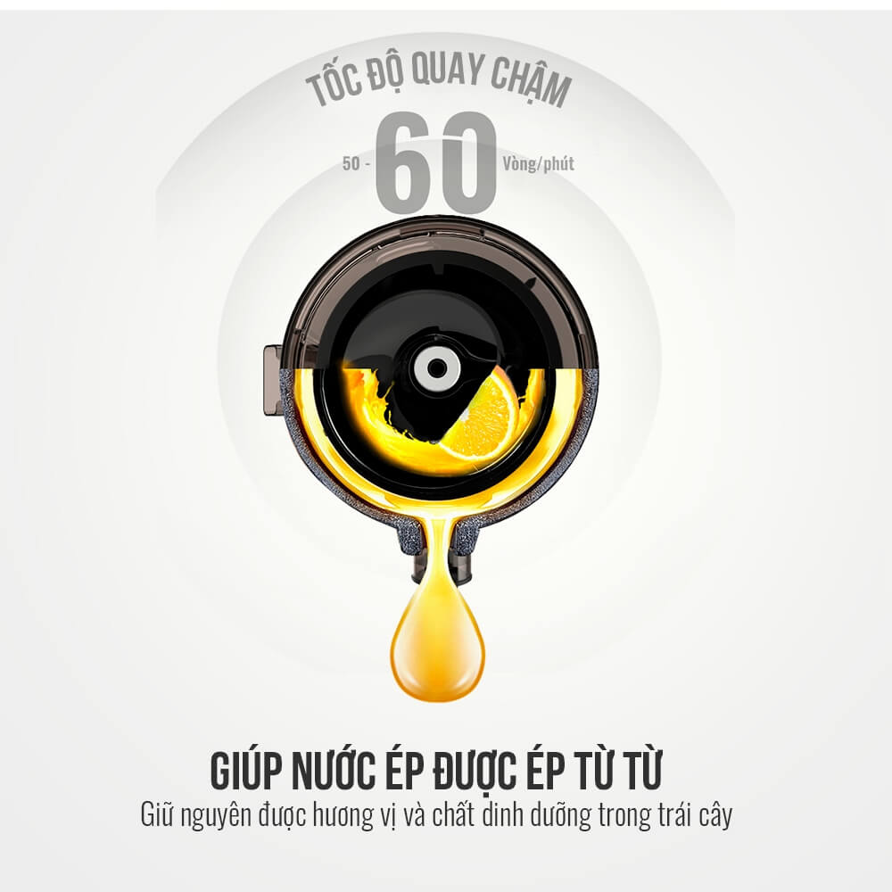 Nhờ phần lưới lọc inox 304 với lỗ siêu nhỏ chỉ 0.2mm giúp nước ép mịn ngon, khi thưởng thức sẽ không bị cảm giác lợn cợn bởi bị lẫn một chút bã ép.
