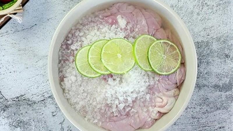 Trong quá trình làm sạch lòng, bạn nên chú ý thêm một chút giấm ăn hoặc rượu trắng. Nó sẽ giúp việc khử mùi được hiệu quả hơn và khi luộc xong, lòng mề thơm và ngọt hơn.
