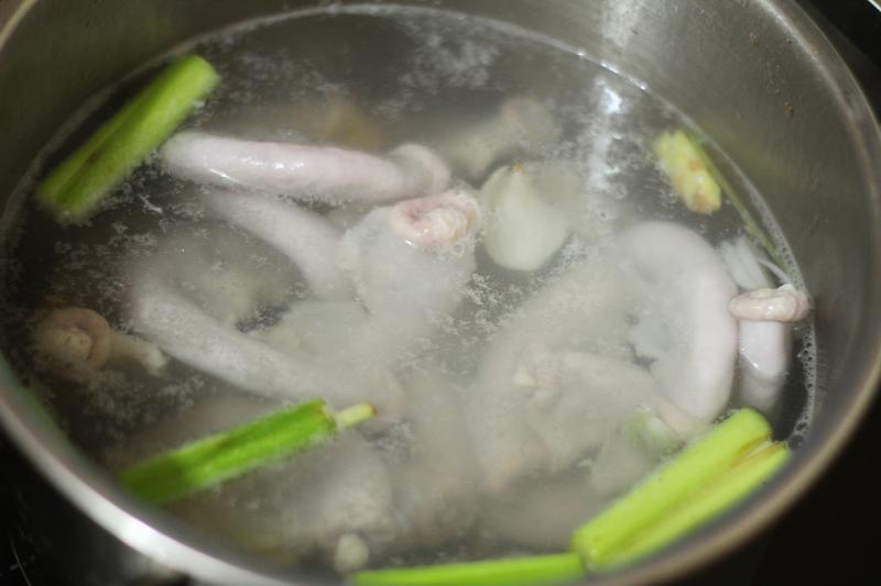 Sau khi rửa thật sạch xương ống, bạn trần qua nước sôi để loại bỏ cặn và mùi hôi. Sau đó rửa lại thật sạch với nước lạnh, để cho ráo nước hoàn toàn.