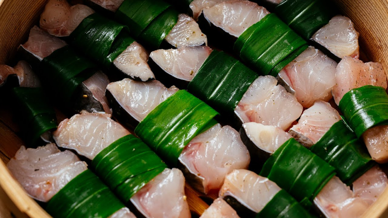 Bạn cũng có thể cuốn cá lăng trong lá gừng để hấp