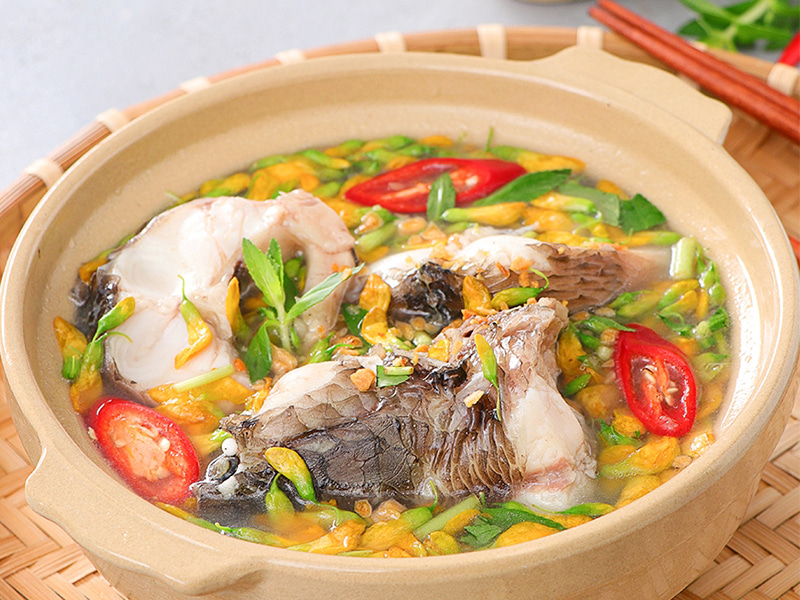 Nếu bạn đang thắc mắc cá lăng nấu gì ngon, hãy thử cá lăng nấu bông điên điển. Đây là một trong những món canh chua nổi tiếng, đặc trưng nhất của miền Tây. Màu vàng của bông điên điển, màu xanh tươi mát của các loại rau sẽ giúp bạn có được một món ăn hoàn hảo trong những ngày trời nóng. Đừng quên chuẩn bị 1 chén mắm mặn với vài lát ớt cay nhé.