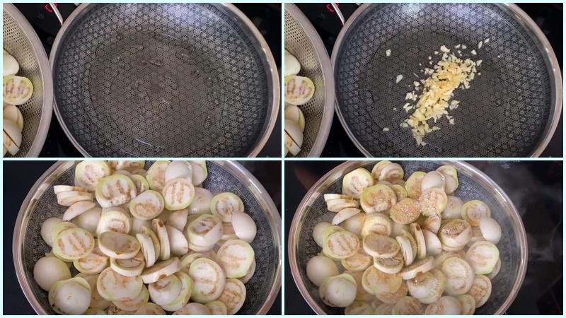 Bạn bắc một chảo nhỏ lên bếp, cho vào 1 thìa canh dầu ăn. Khi dầu nóng, cho phần tỏi băm vào nồi phi lên thật thơm.