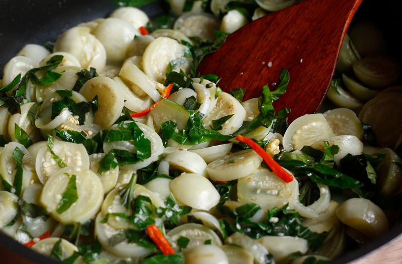 Ngoài muối, bạn có thể xào cà pháo với lá lốt để sở hữu một món ăn thơm ngon hấp dẫn