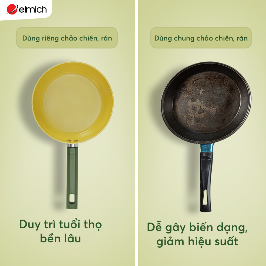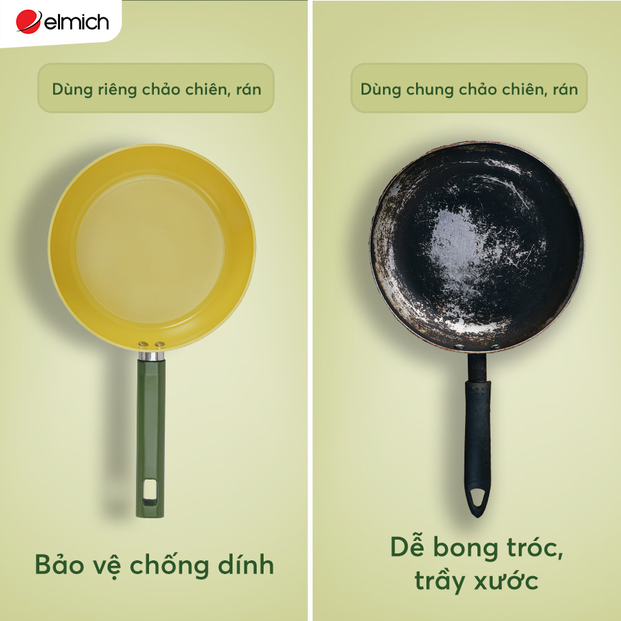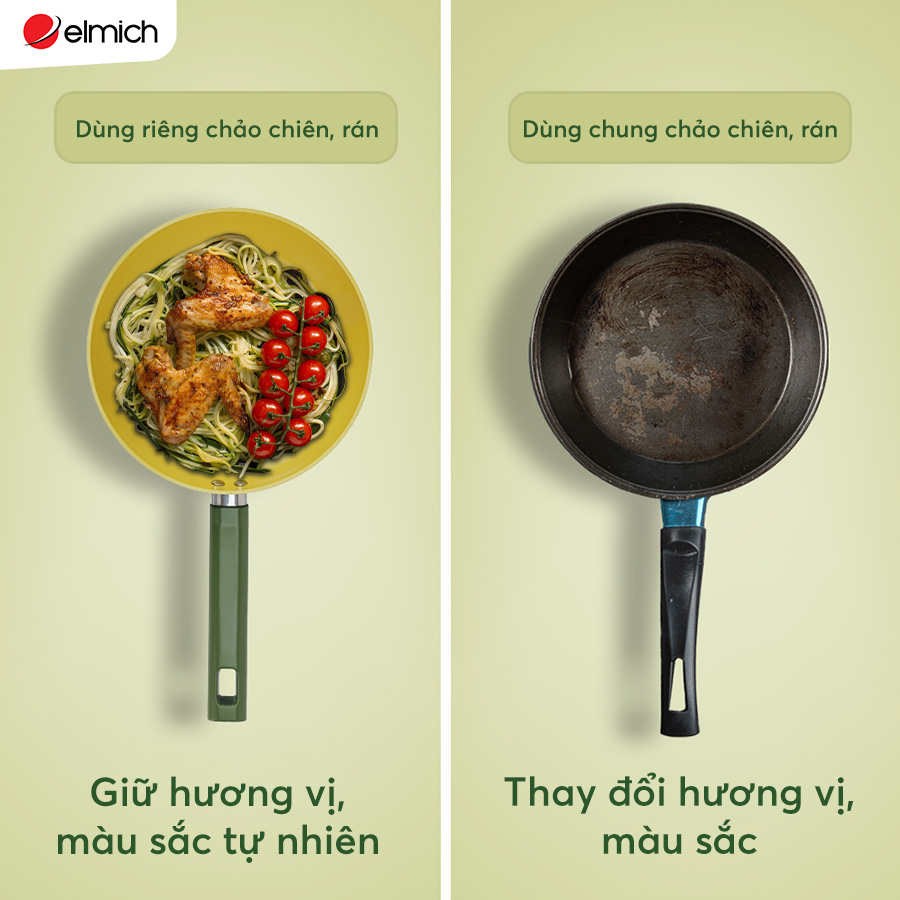 Dầu mỡ từ các món chiên thường bám chặt vào chảo. Nếu dùng chảo chiên để xào ngay sau đó, bạn sẽ mất thêm thời gian vệ sinh và món xào cũng dễ bị ám mùi dầu mỡ. Tách riêng hai loại chảo giúp quá trình nấu nướng sạch sẽ và thuận tiện hơn.