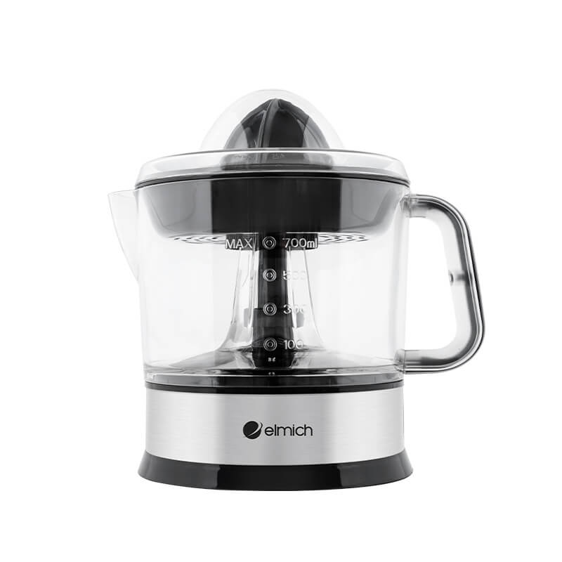 Máy vắt cam Elmich EDA-0808 với thiết kế màu đen và nhựa trong suốt, nhỏ gọn làm tôn lên vẻ đẹp không gian bếp.