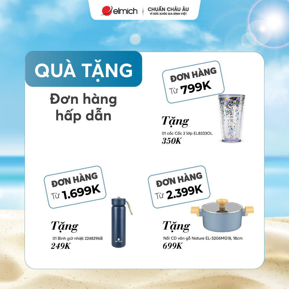 - Đơn từ 799K: Tặng 1 cốc nhựa 2 lớp Elmich EL8333OL trị giá 180K