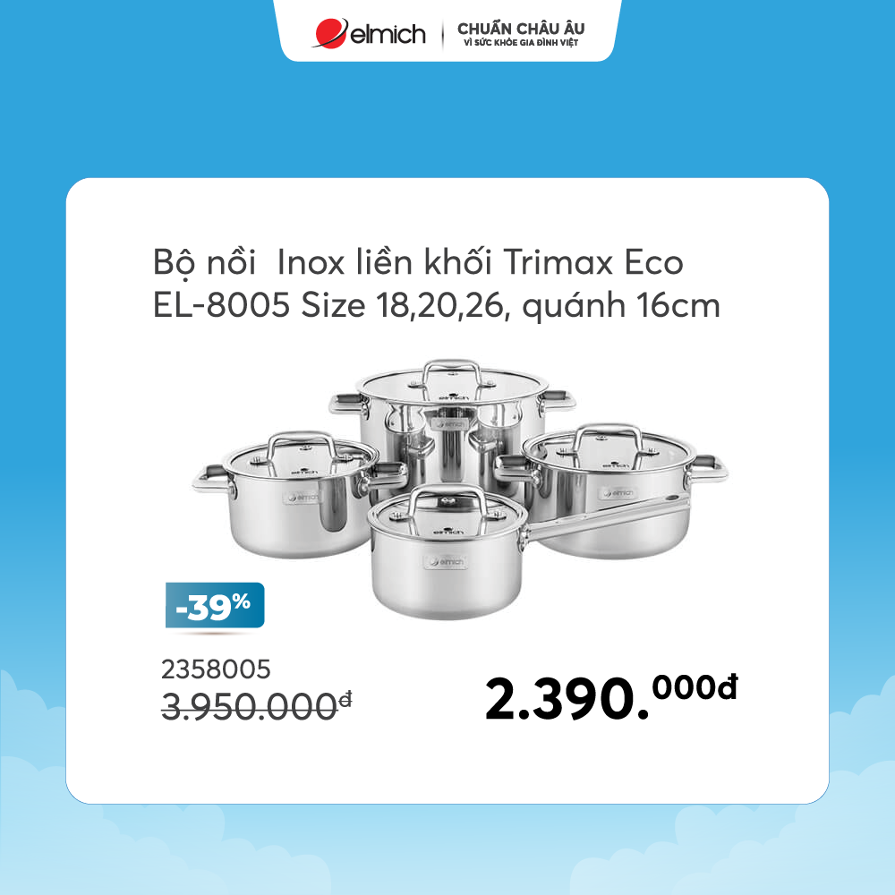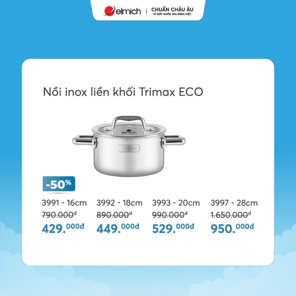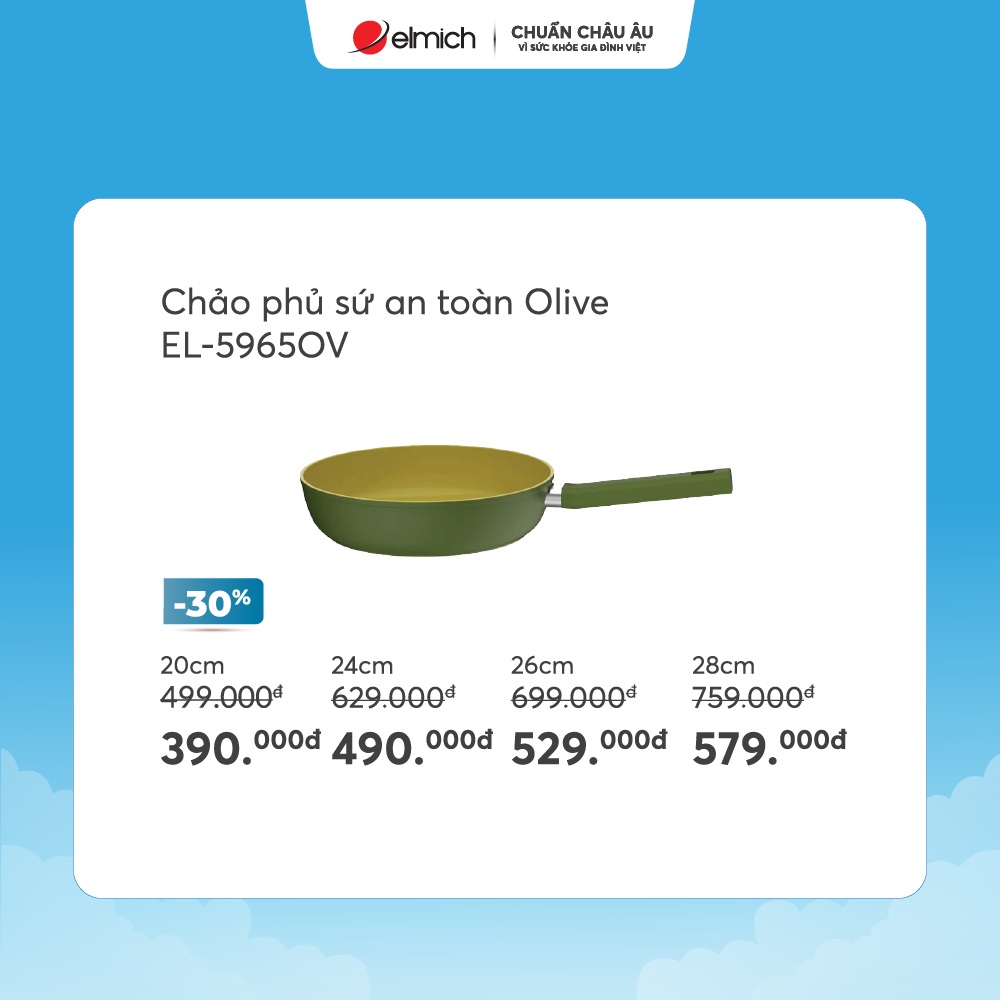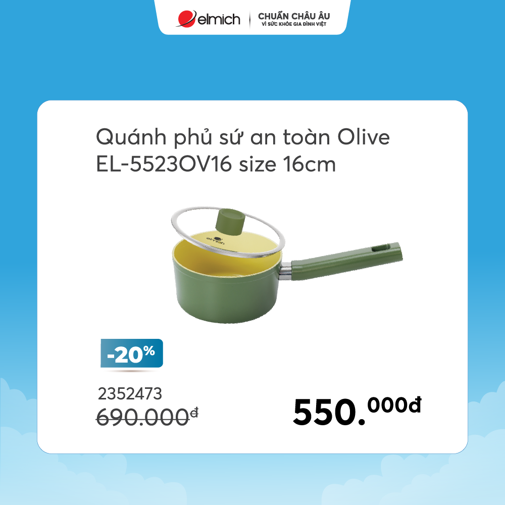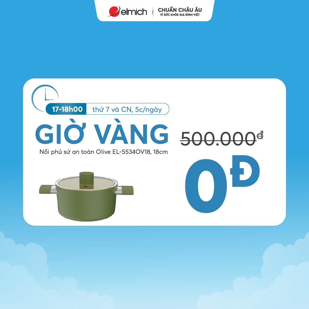 - Sản phẩm ưu đãi: Nồi phủ sứ an toàn Elmich Olive EL-5534OV18 size 18cm (giá 0 đồng – mỗi ngày chỉ 10 chiếc)