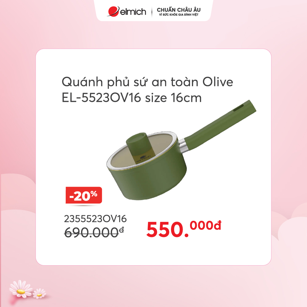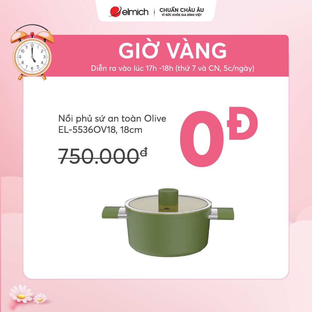 Chỉ 0Đ sở hữu ngay Nồi phủ sứ an toàn Elmich Olive EL-5536OV18 size 18cm