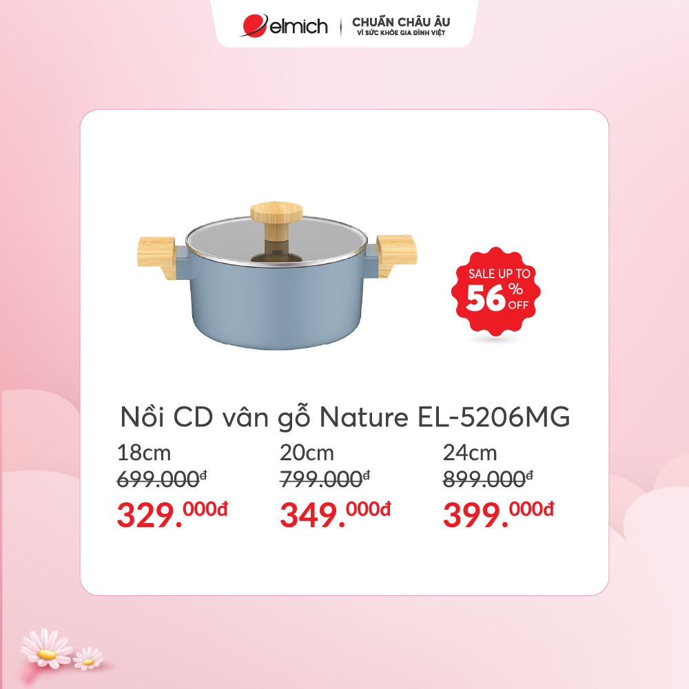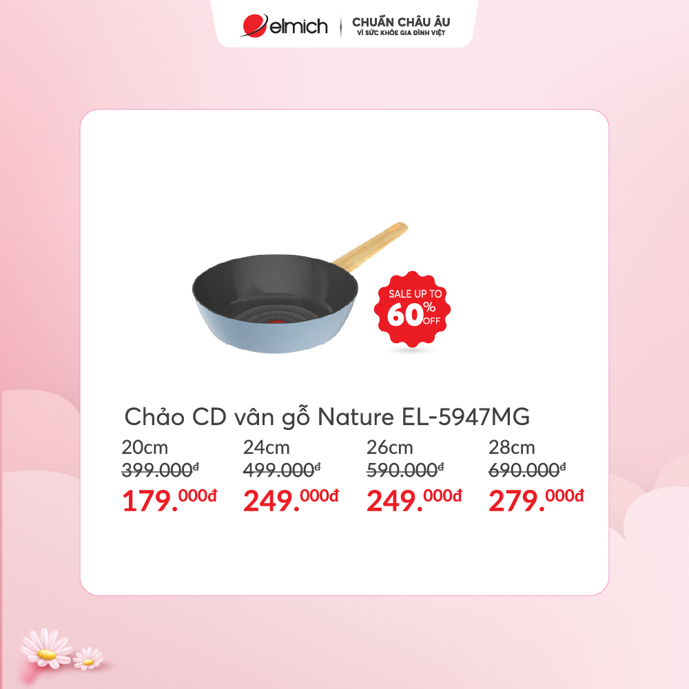 Chảo chống dính vân gỗ Elmich EL-5956SK20 SIZE 20cm chỉ 129k, giá gốc 299k