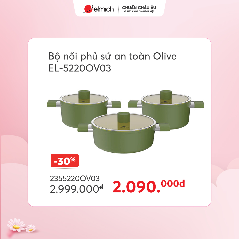 Bộ nồi Elmich Olive EL-5220OV03 size 18,20,24cm chỉ 2090k, giá gốc 2990k