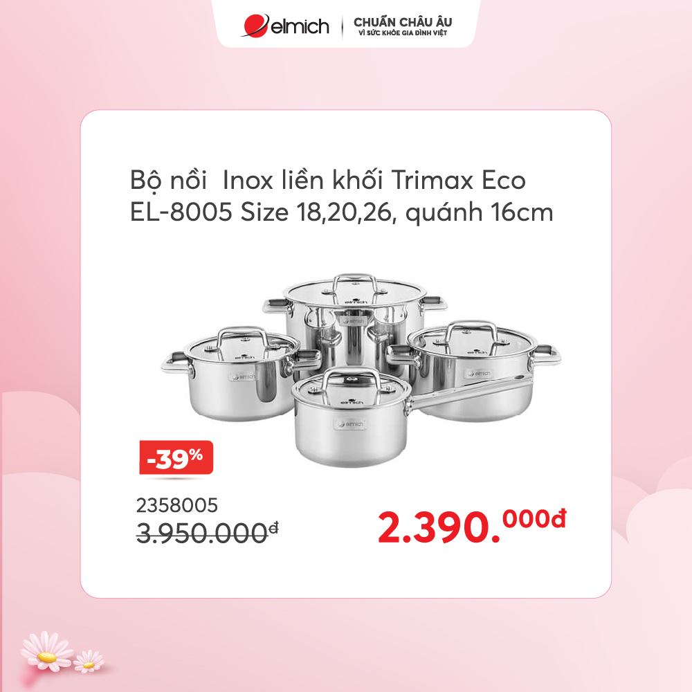 Bộ nồi inox Elmich EL-2476 chỉ 1790k, giá gốc 3190k