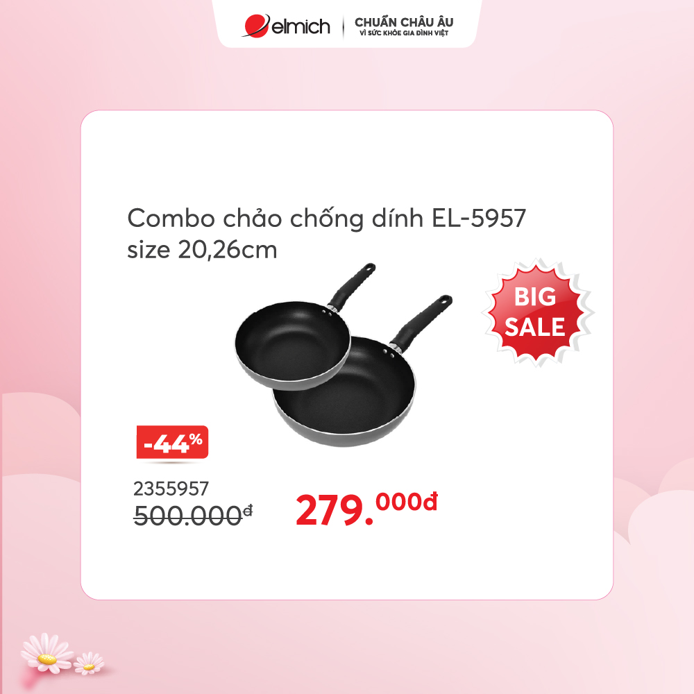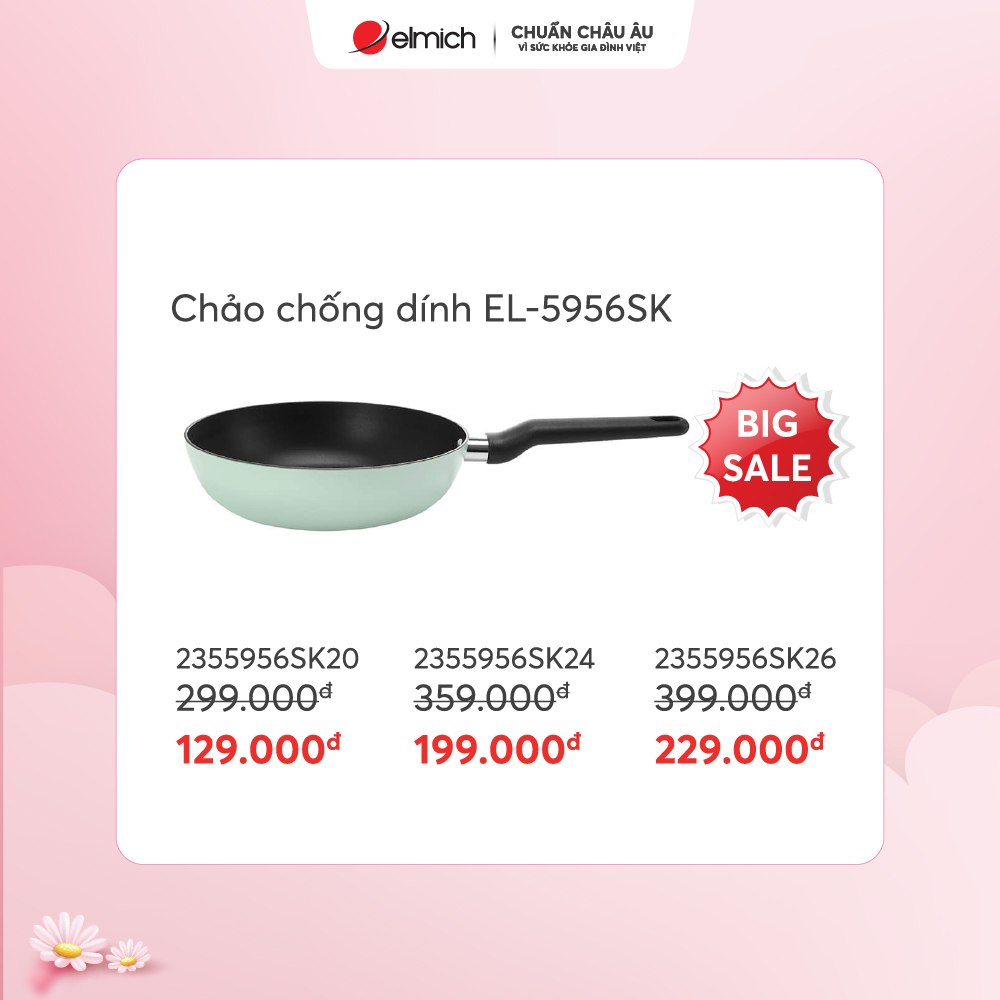 Chảo chống dính Elmich EL-5947MG/BK26 26cm chỉ 249k, giá gốc 590k