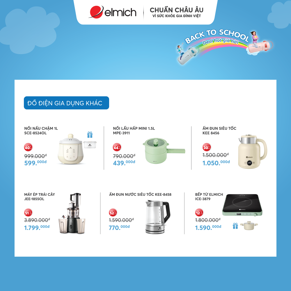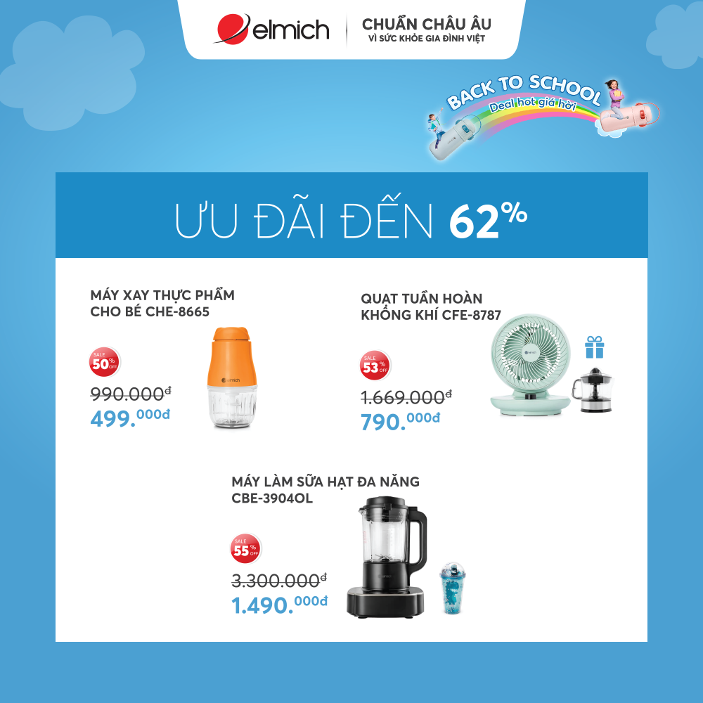 Sau một thời gian nghỉ xả hơi, hãy lấy lại động lực học tập, thêm nguồn cảm hứng học hành bằng cách săn ngay các sản phẩm gia dụng giá sốc trong chương trình BACK TO SCHOOL của Elmich nhé!