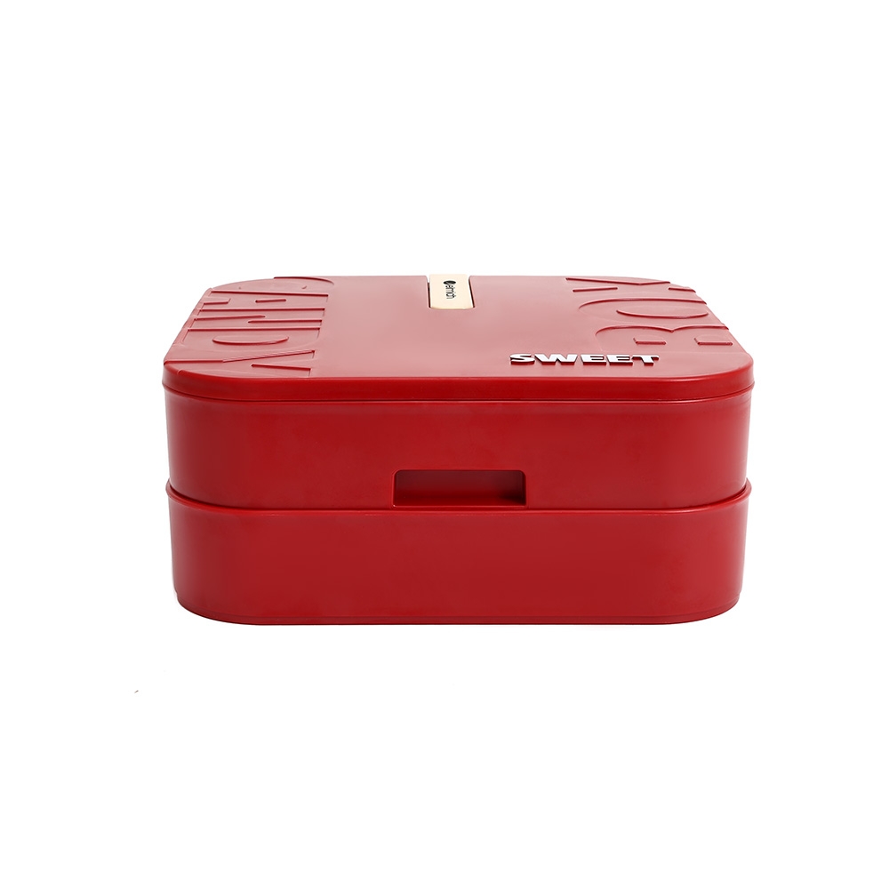 Thiết kế sang trọng và tiện lợi: Hộp mứt được thiết kế 2 tầng, mỗi tầng gồm 4 ngăn nhỏ, giúp dễ dàng sắp xếp các loại mứt, hạt, hoặc đồ ăn khác một cách gọn gàng và thẩm mỹ.