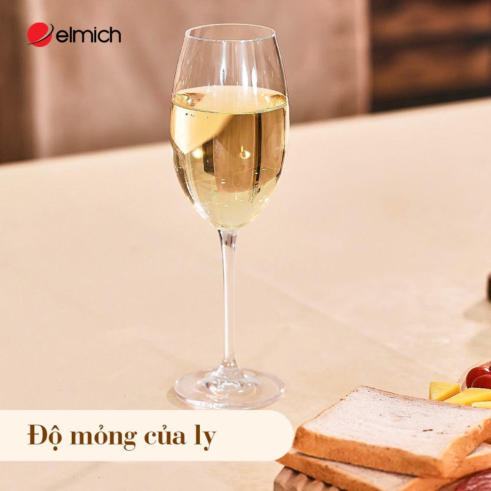 Ly rượu vang trắng: Thân cao, miệng nhỏ để giữ độ lạnh và hương vị tươi mới.