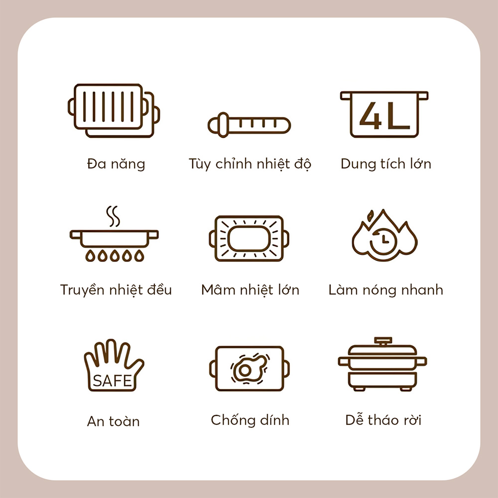 | tay cầm cách nhiệt tốt, dễ dàng di chuyển | |||