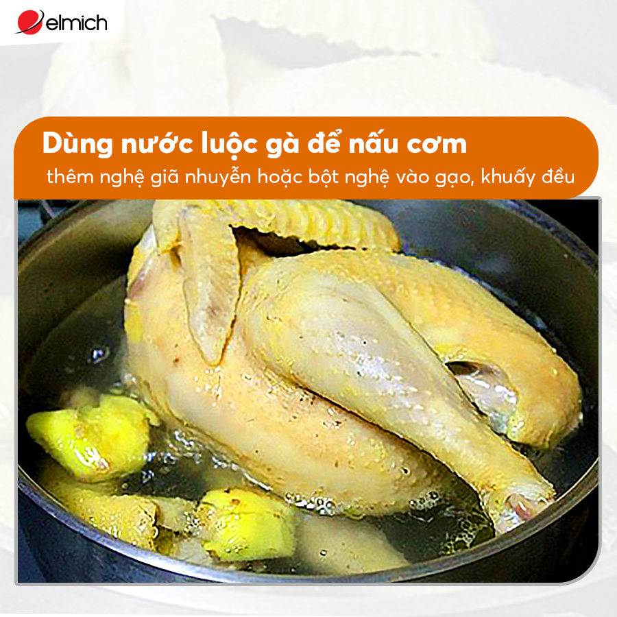 Nấu cơm: Dùng nước luộc gà nấu cơm để cơm thêm đậm đà.
