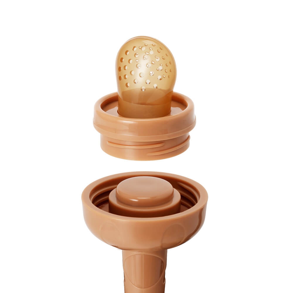 Đầu nhai được thiết kế thông minh, giúp hạn chế nguy cơ hóc hay ngạt khi trẻ tập nhai các loại thực phẩm rời như cơm, hạt, rau củ, trái cây
