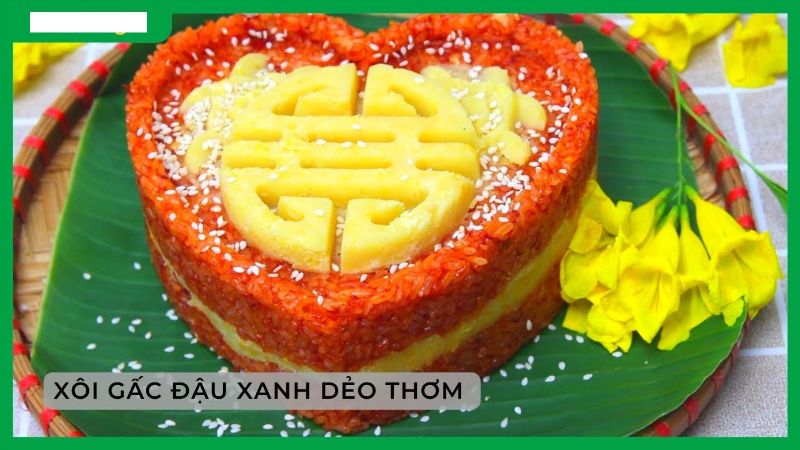 Một mẫu xôi gấc được đóng khuôn phù hợp với ngày cưới