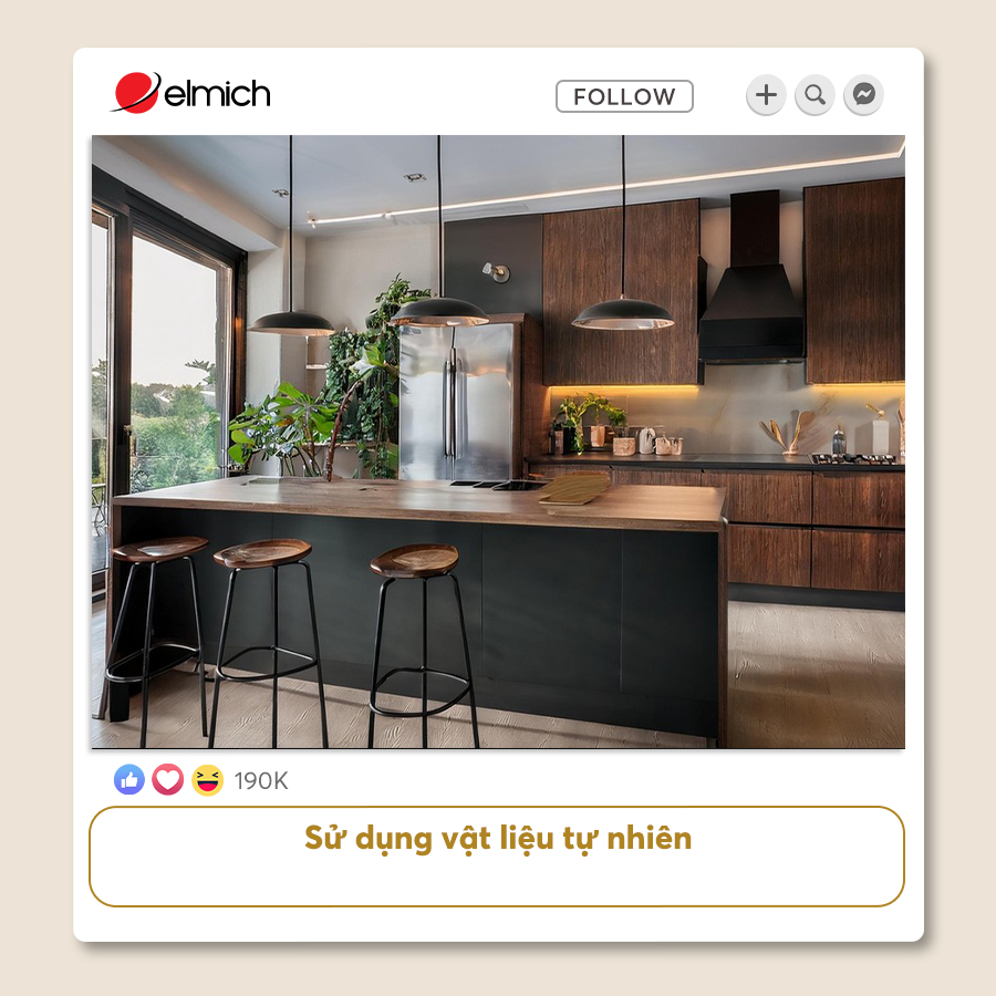 Sử dụng vật liệu tự nhiên: Việc kết hợp các vật liệu như gỗ, đá và kính tạo nên vẻ đẹp độc đáo và gần gũi với thiên nhiên cho không gian bếp.